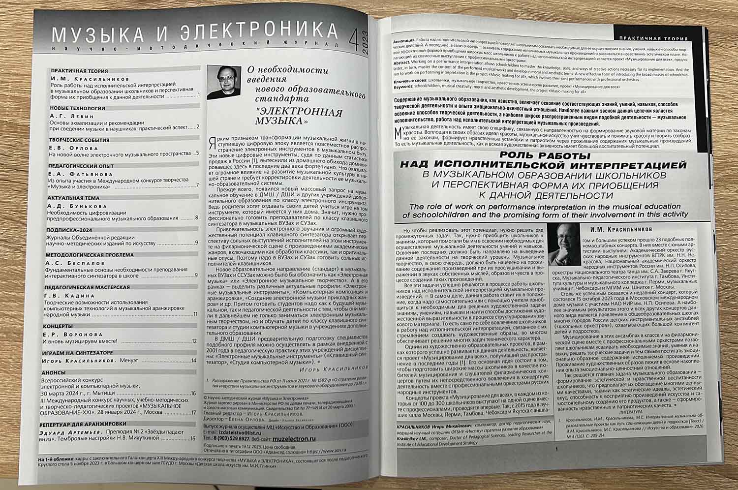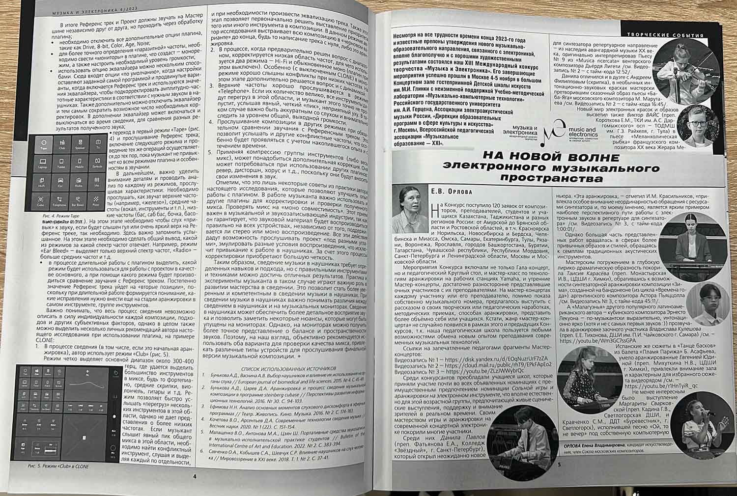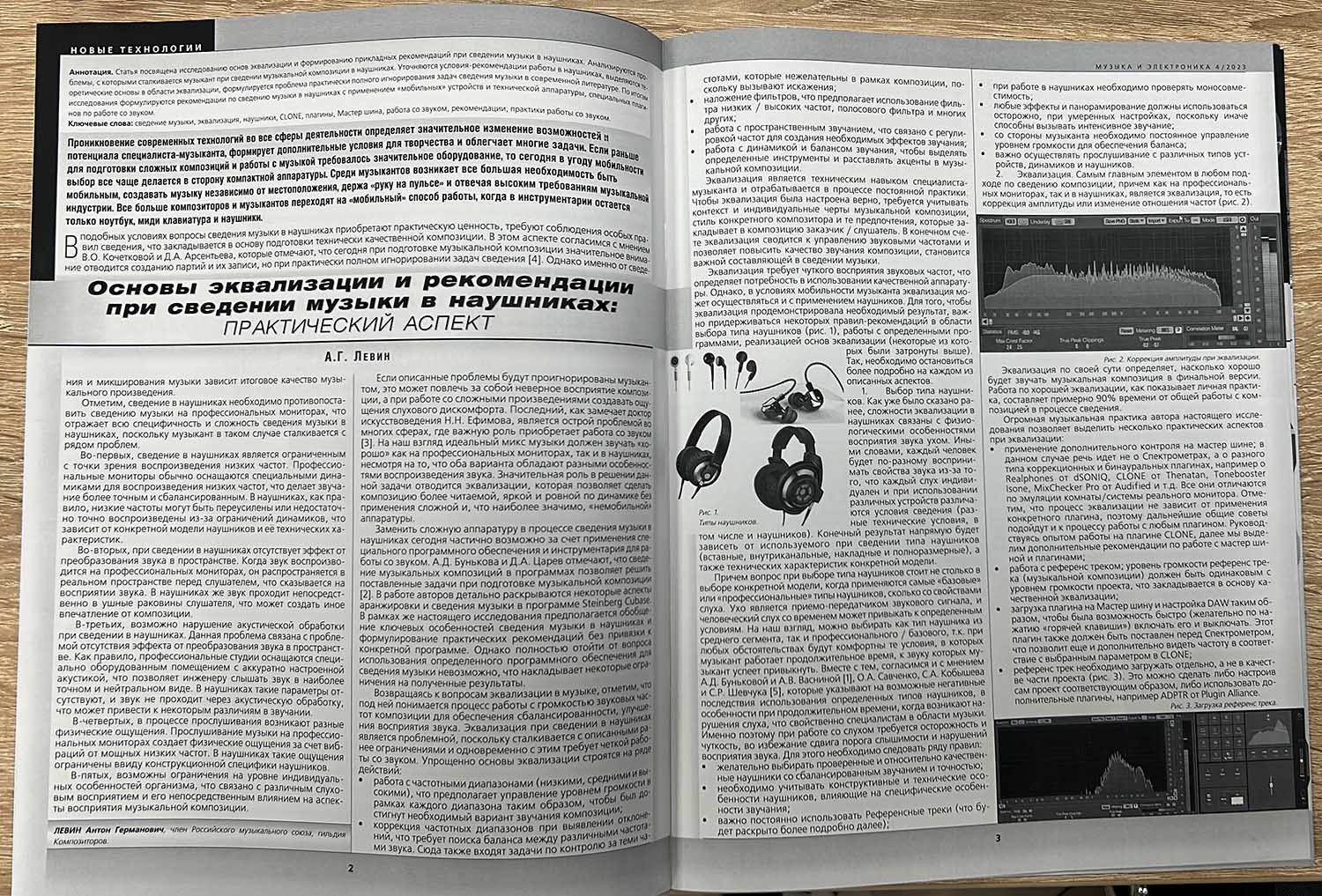 My article "BASIS OF EQUALIZATION AND RECOMMENDATIONS FOR MUSIC MIXING IN HEADPHONES: PRACTICAL ASPECT" was published in the scientific and methodological journal "Music and Electronics" issue 4 quarter 2023. I would like to express my gratitude to the entire editorial staff of the journal, especially to the director of the journal, candidate of art history and member of the Union of Moscow Composers, Elena Orlova!